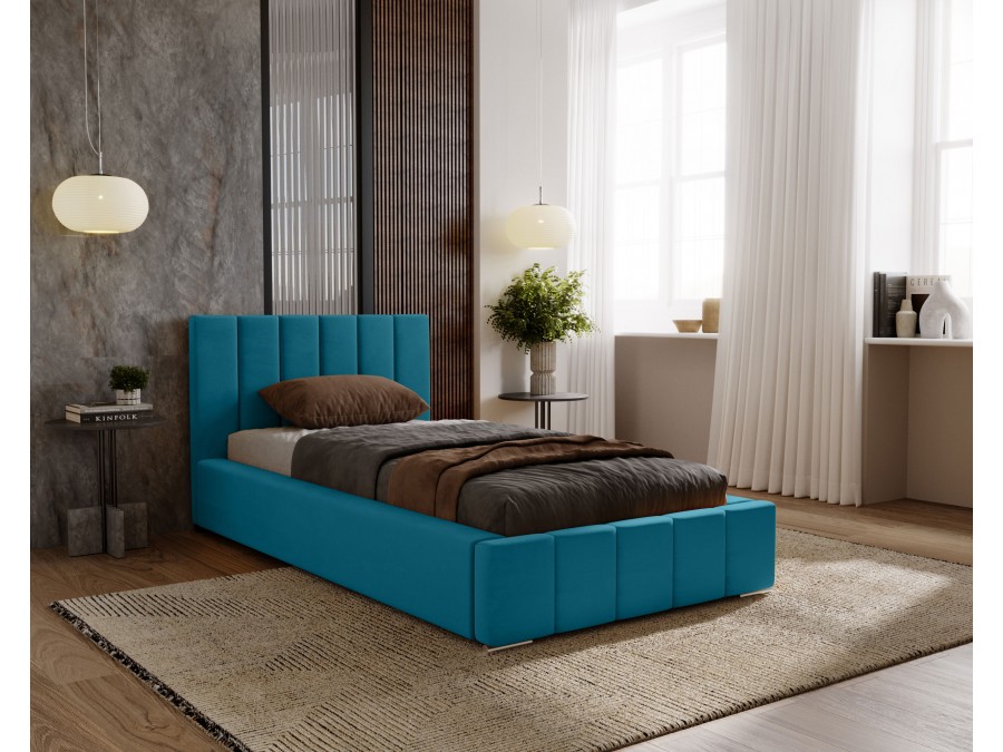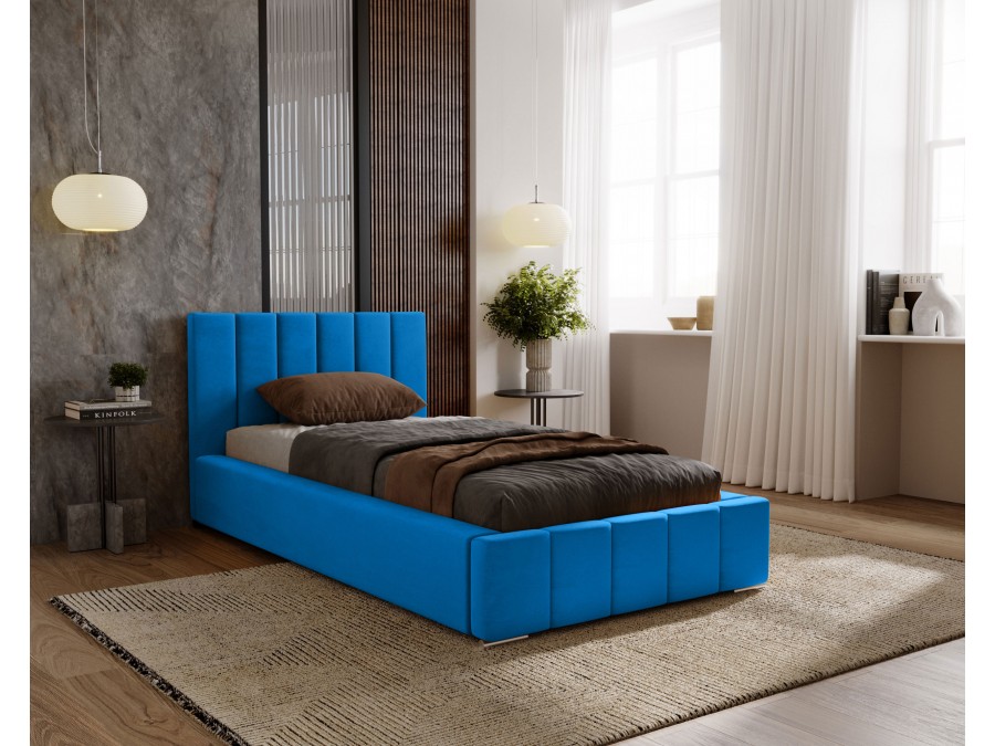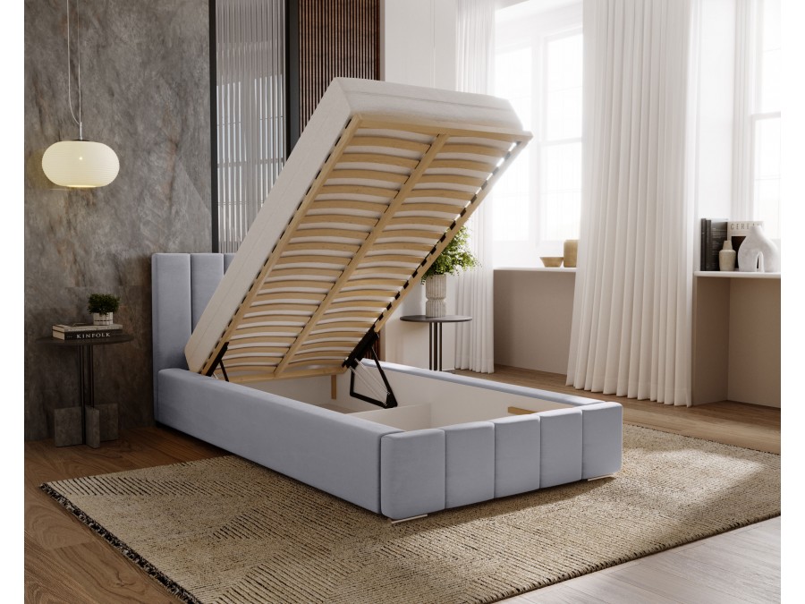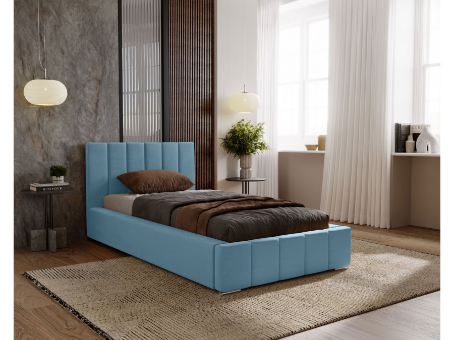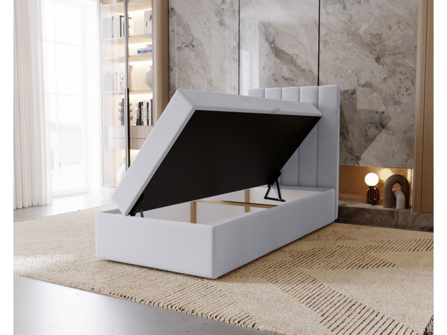 Łóżko tapicerowane jednoosobowe sypialniane AURA ze stelażem i pojemnikiem na pościel