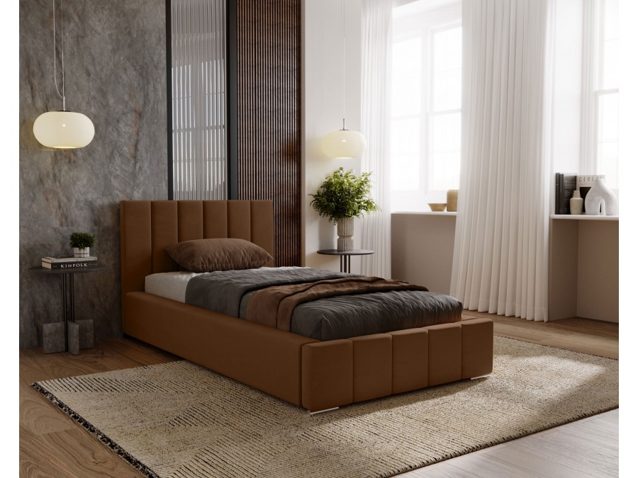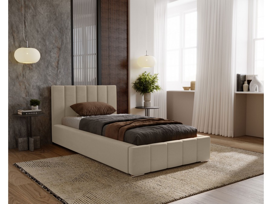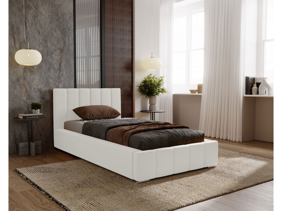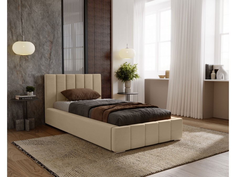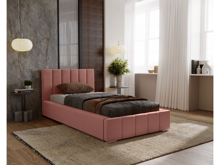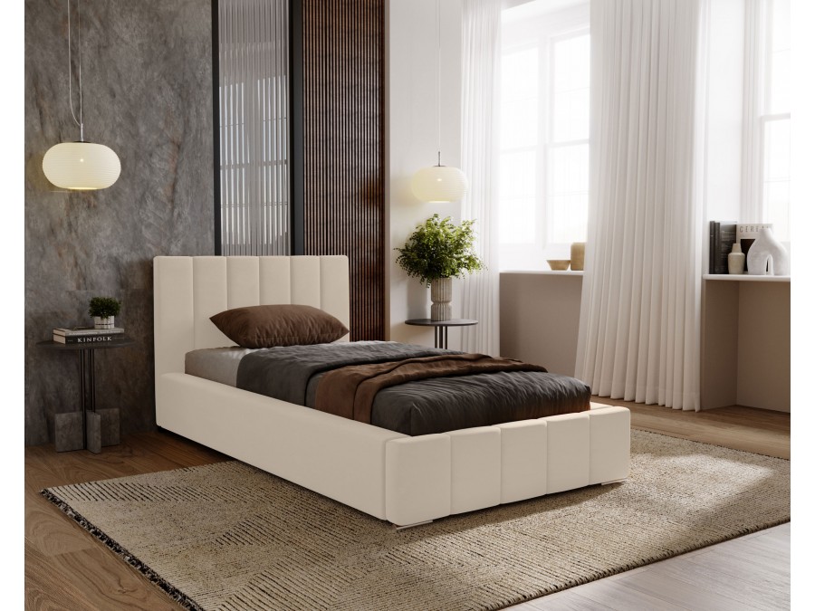 Łóżko tapicerowane jednoosobowe sypialniane AURA ze stelażem i pojemnikiem na pościel