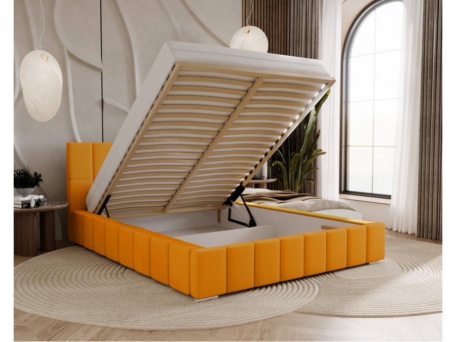 - Funkcjonalny pojemnik – obszerny schowek sprawia, że ALMA to praktyczne łóżko tapicerowane z pojemnikiem, które ułatwia utrzymanie porządku w sypialni.