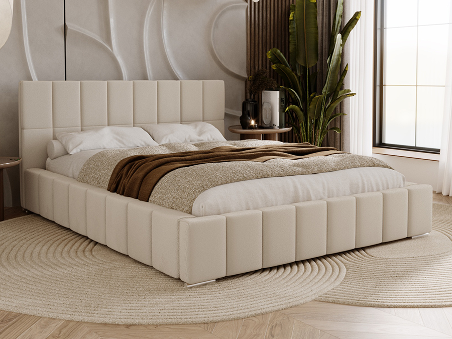 Łóżko ALMA to nowoczesne łóżko tapicerowane do sypialni, które łączy wygodę snu z ponadczasową elegancją. Solidna konstrukcja, praktyczny pojemnik oraz dekoracyjne wykończenie sprawiają, że to mebel idealny zarówno do klasycznych, jak i nowoczesnych wnętrz. Dzięki starannemu wykonaniu, ALMA będzie centralnym punktem Twojej sypialni przez lata.