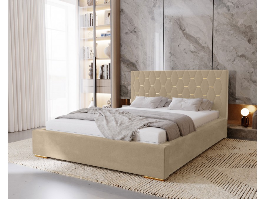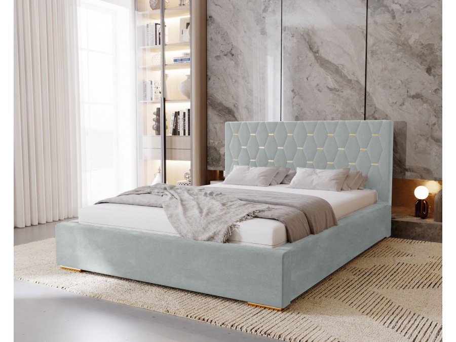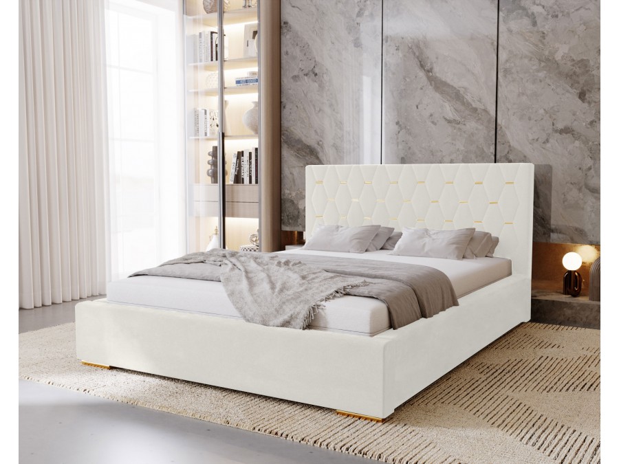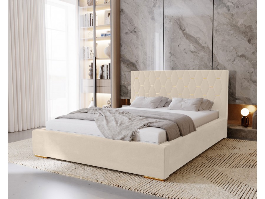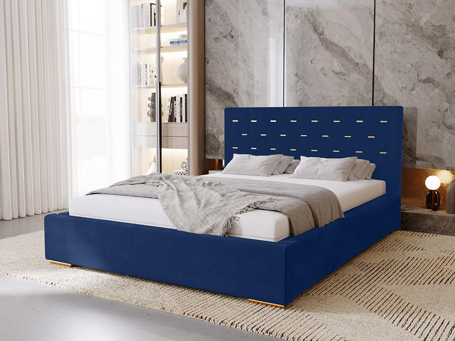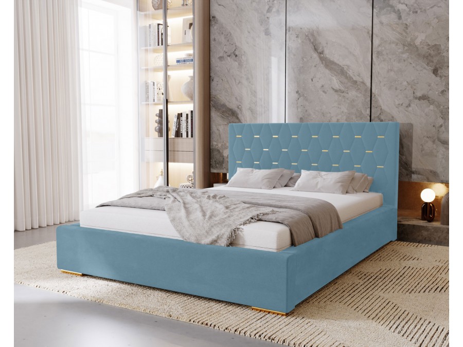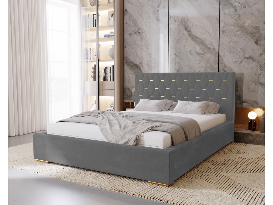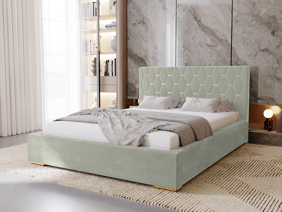 Łóżko tapicerowane do sypialni GOLDEN ze stelażem i pojemnikiem na pościel