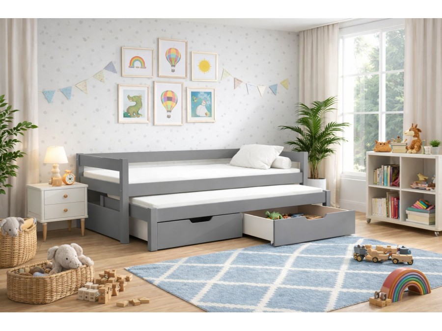 Postaw na funkcjonalne łóżko dziecięce z wysuwanym spaniem i szufladami, które rośnie razem z potrzebami Twojego dziecka.