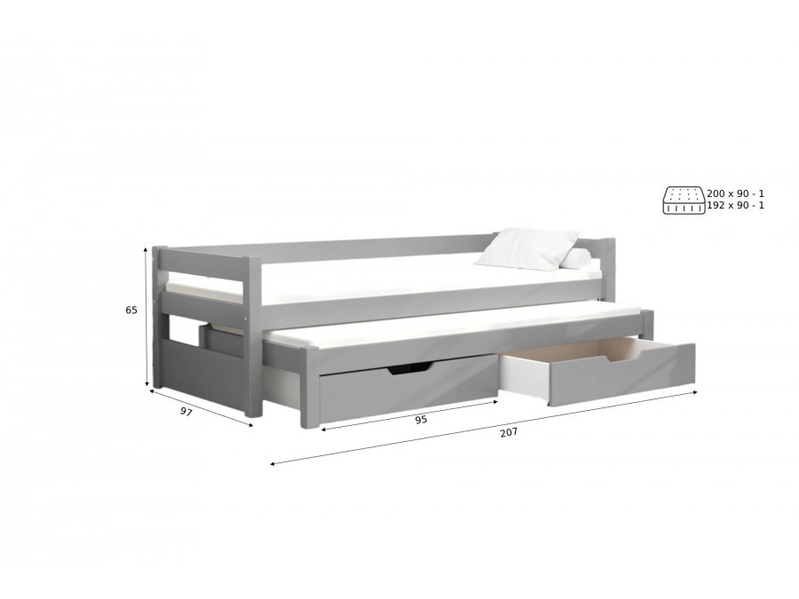 - Dwie pojemne szuflady – dodatkowe miejsce na pościel, zabawki i ubrania