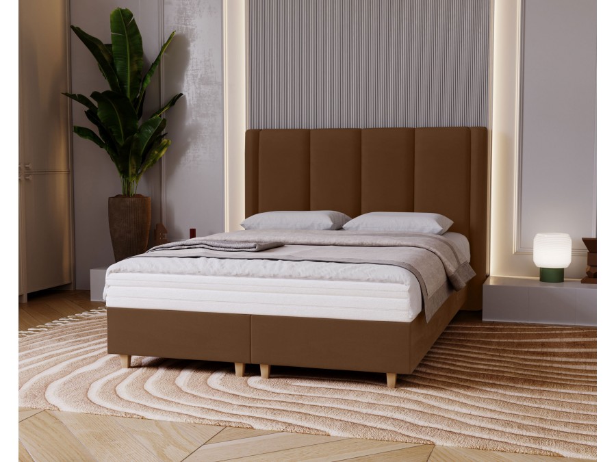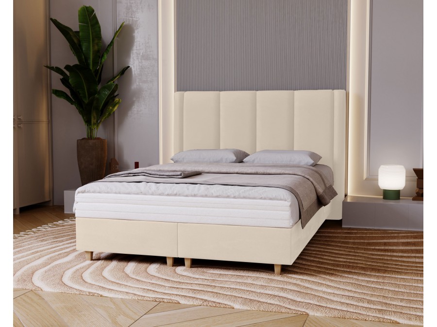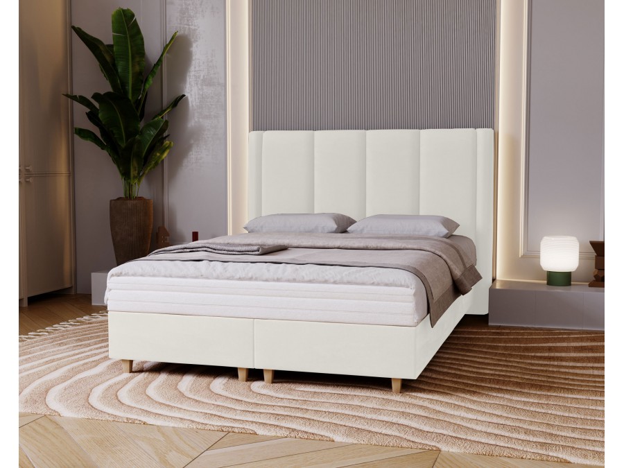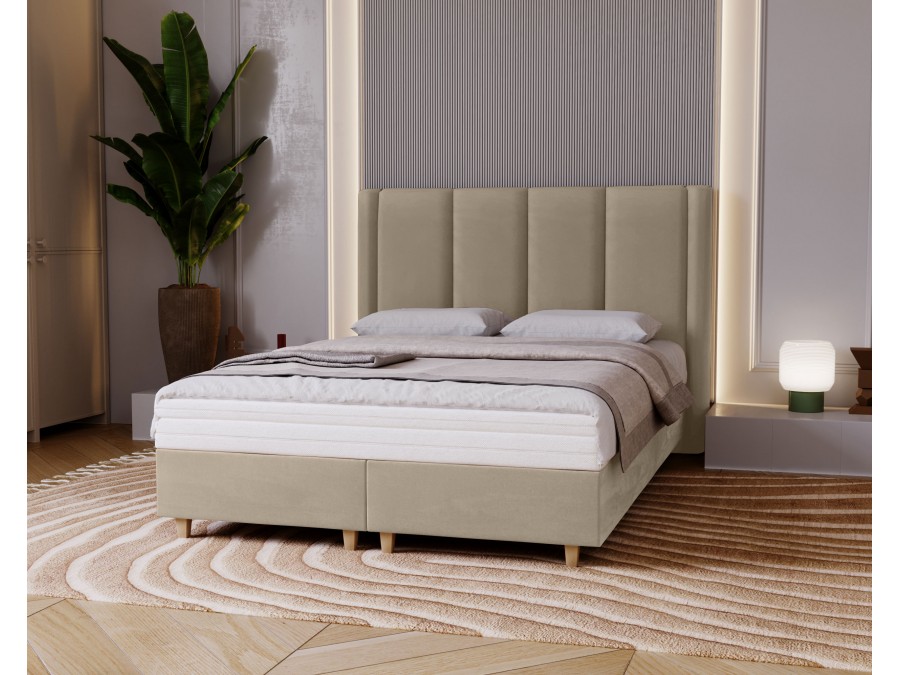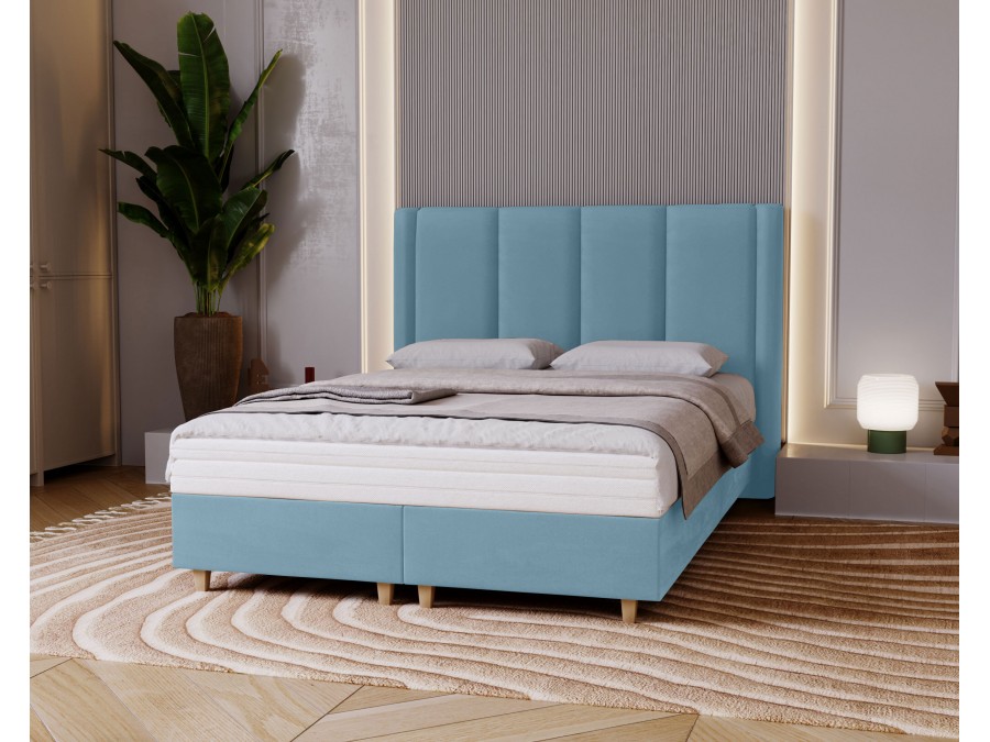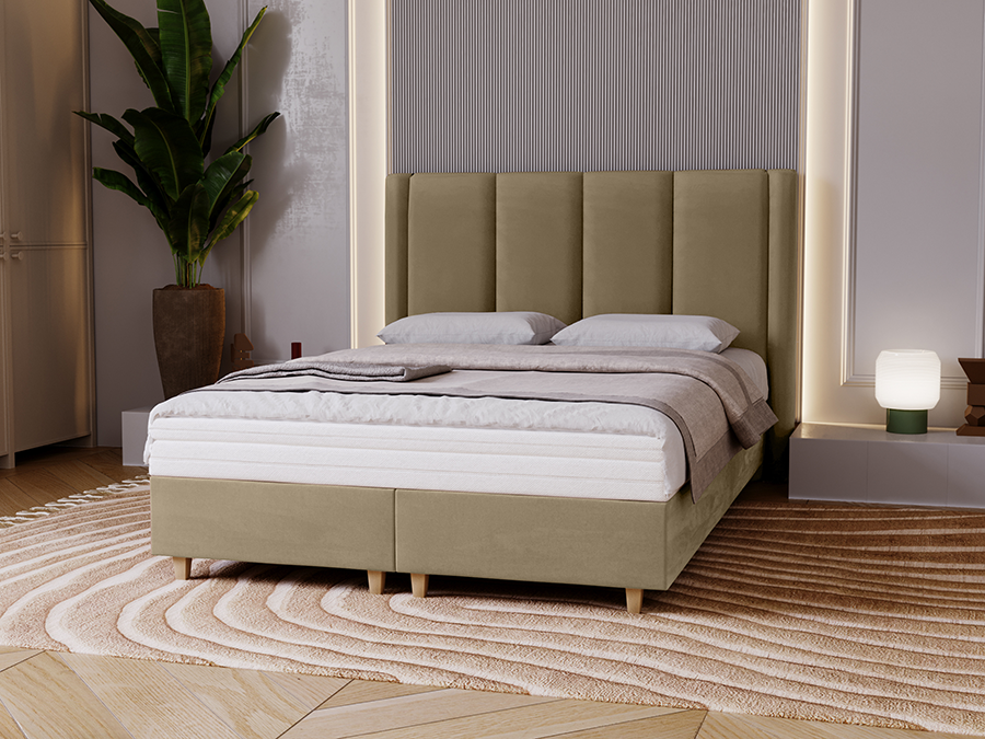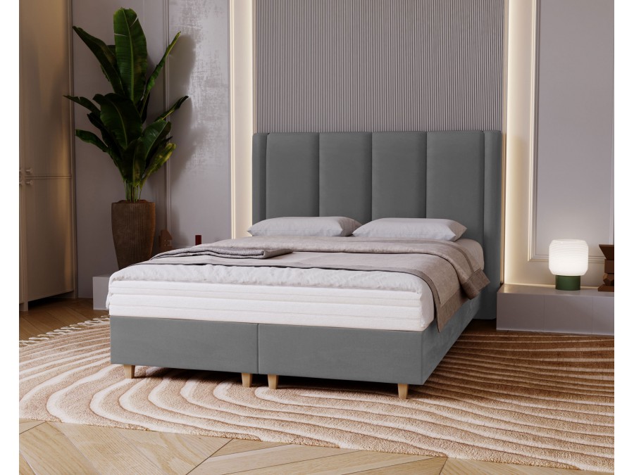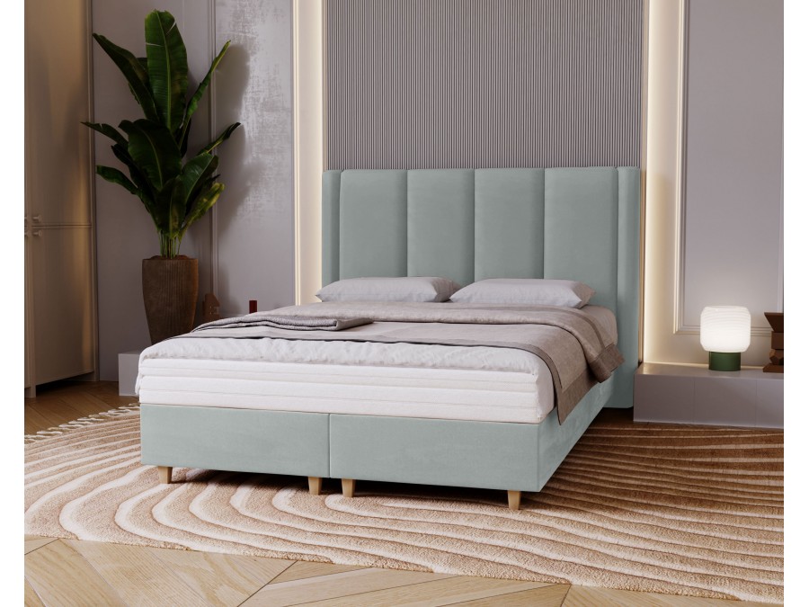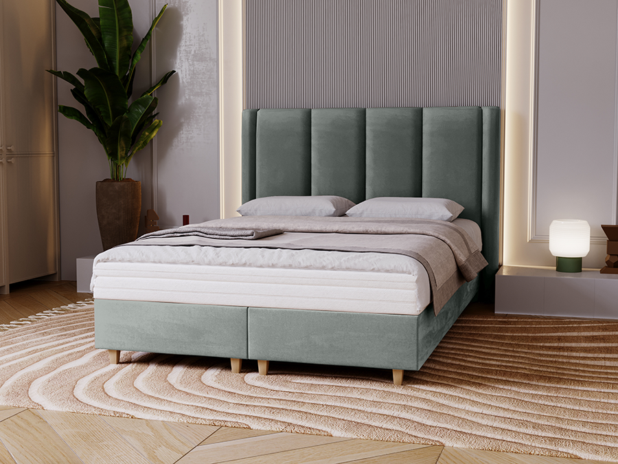 - Nowoczesny design – eleganckie tapicerowane zagłowie z pionowymi pasami nadaje łóżku wyjątkowego charakteru i wprowadza do wnętrza nutę luksusu.