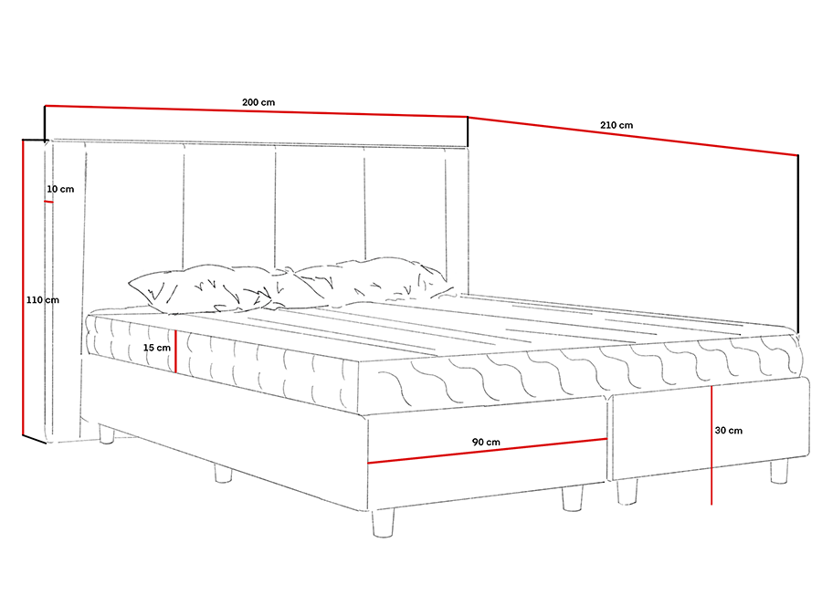 200×200 cm → szerokość zagłówka 220 cm - Wymiary szczegółowe