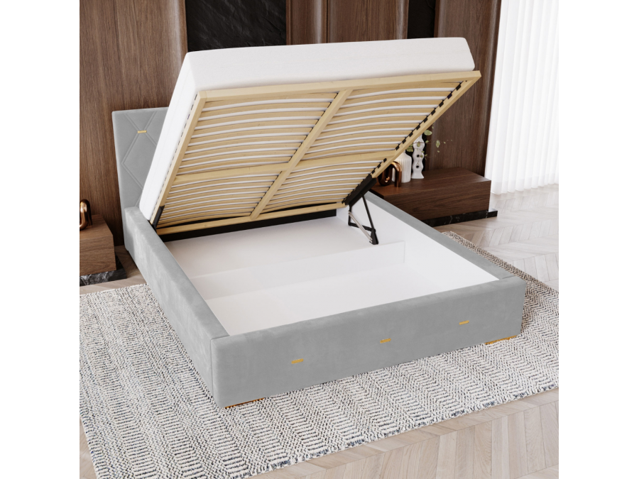 • Maksymalny porządek – funkcjonalne łóżko 200x200 z pojemnikiem oferuje ogromną przestrzeń pod stelażem, idealną na pościel i koce.