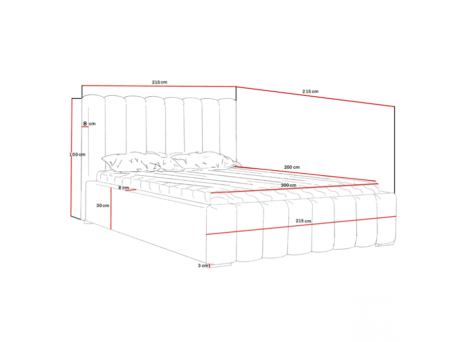 • Korpus tapicerowany – boki łóżka wykończone pianką i elegancką tkaniną