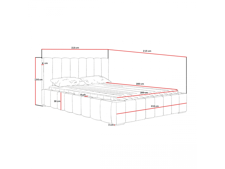 - Korpus tapicerowany – boki i przód o wysokości 30 cm i grubości 8 cm