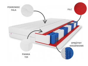 - Sprężyny kieszeniowe Pocket - Reagują niezależnie, zapewniając punktowe podparcie. Idealne dopasowanie do sylwetki gwarantuje komfort przez całą noc.