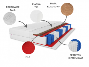 Mata kokosowa – to wkład z naturalnego kokosa. Zwiększa on twardość i wytrzymałość materaca oraz poprawia cyrkulację powietrza oraz ma działanie antyalergiczne.