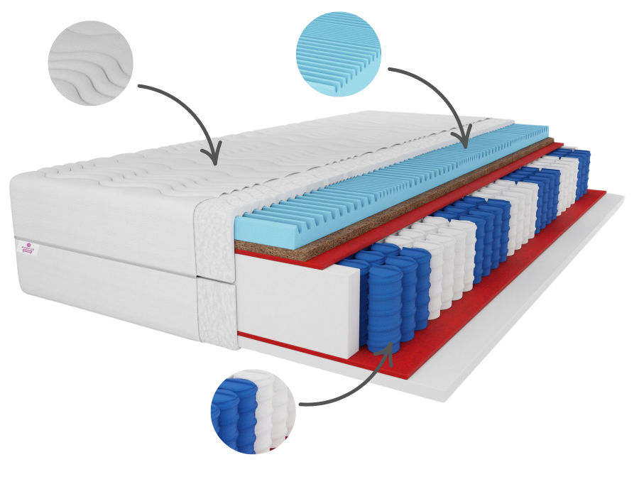 • Sprężyny kieszeniowe pocket – niezależna praca sprężyn zapewnia punktowe podparcie i dostosowanie do sylwetki.