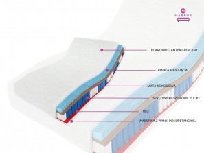 Materac kieszeniowy 160x200 PREMIUM KOKOS H3/H4, 27cm, warstwa masująca, pocket, kokos, 7 stref