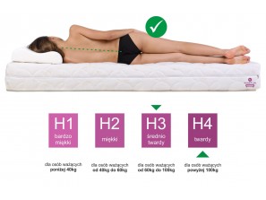- Twardość materaca H3/H4 - dwie powierzchnie pozwalają dopasować materac średnio twardy lub twardy do wagi od 60 kg do ponad 100 kg.