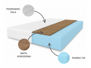 - Mata kokosowa (1 cm) - wykonana z naturalnych włókien orzecha, usztywnia jedną stronę produktu i hamuje rozwój drobnoustrojów.