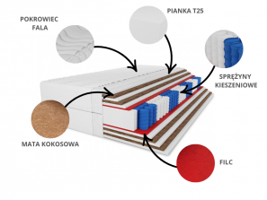 Wszyta po wewnętrznej stronie pokrowca. Nadaje odpowiedniej sprężystości i miękkości materacowi oraz posiada właściwości wchłaniania potu.