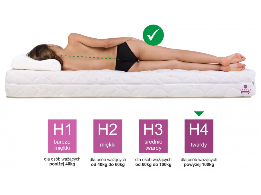 - Twardość H4 – polecany dla osób o wadze powyżej 100kg,
