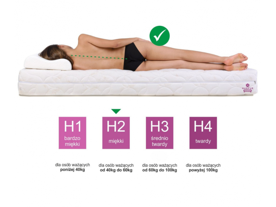 • Twardość H2 – polecany dla osób o wadze w przedziale 40-60kg,