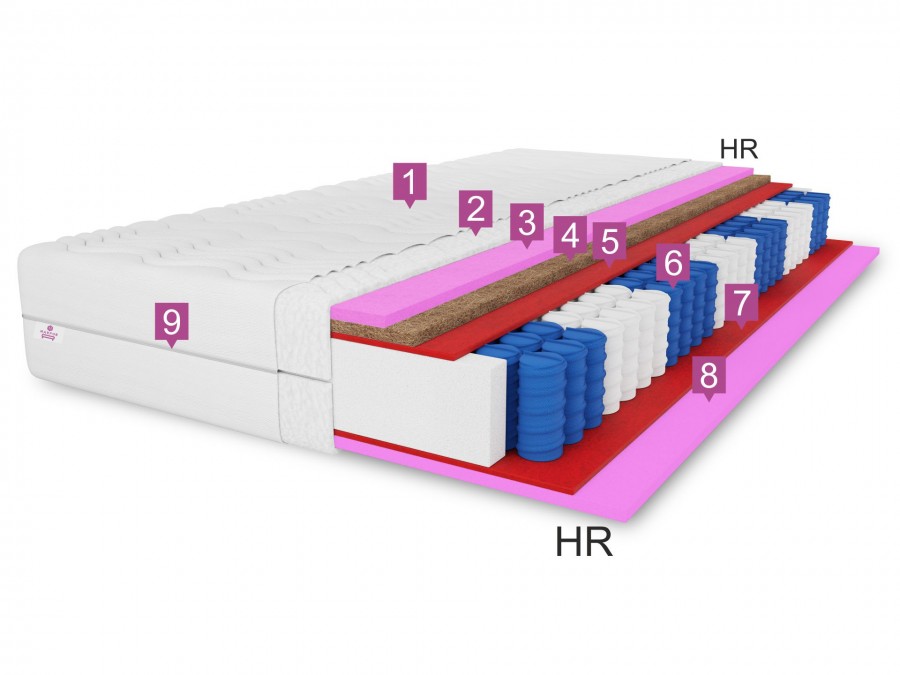 Poznaj nowoczesny materac kieszeniowy wielowarstwowy, który powstał z myślą o najbardziej wymagających użytkownikach. To produkt łączący zaawansowaną technologię sprężyn kieszeniowych 7-strefowych z naturalnymi i antyalergicznymi surowcami, takimi jak mata kokosowa i wysokoelastyczna pianka HR. Każda warstwa została zaprojektowana z myślą o zdrowym i spokojnym śnie – niezależnie od wagi, pozycji spania czy indywidualnych preferencji. Materac wspiera prawidłowe ułożenie kręgosłupa. Polecany dla osób z bólami kręgosłupa oraz z problemami z napięciem mięśniowym, oraz dla alergików.