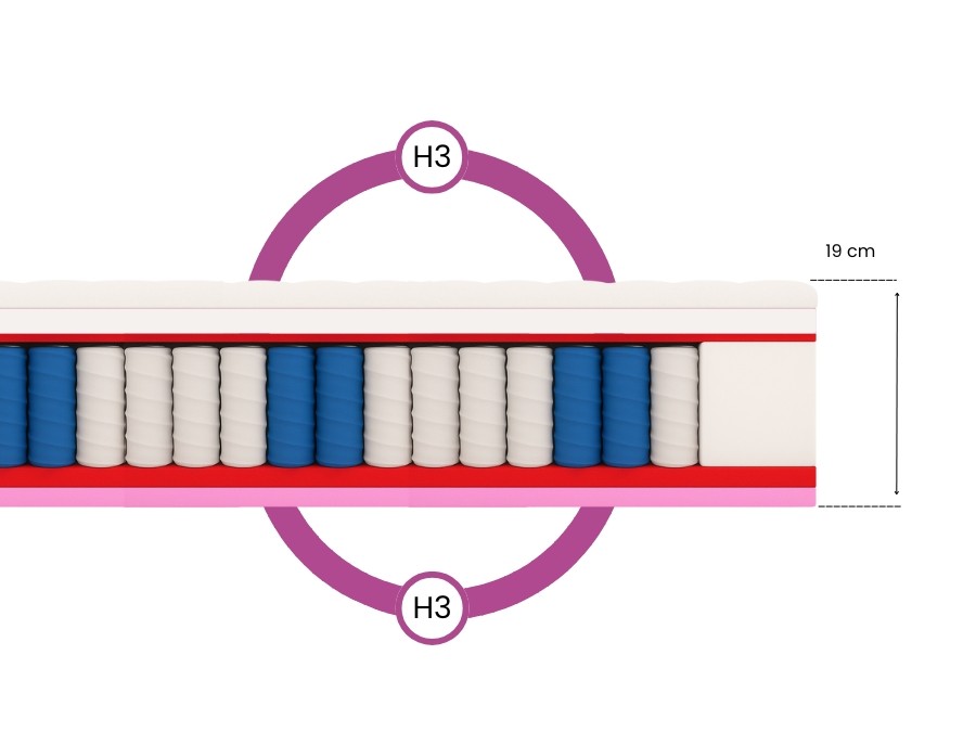 - Twardość H3 – polecany dla osób w przedziale wagowym 60-100kg,