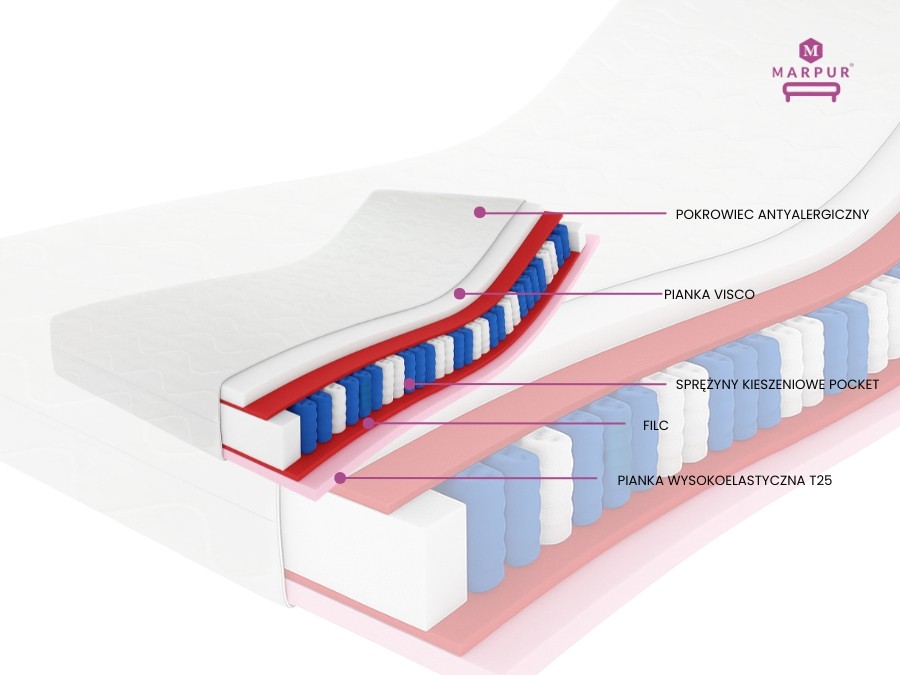 Materac kieszeniowy 160x200 MUVIESO H3, pocket, pianka HR, antyalergiczny, 7 stref, wys. 25cm