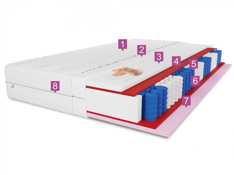 18 centymetrowe sprężyny zwane również kieszeniowymi, w których każda sprężyna umieszczona jest w osobnej tkaninowej kieszeni. Pracują one niezależnie od siebie, co zapewnia punktowe podparcie ciała, idealne dopasowanie do ciała. System ten wspiera kręgosłup i redukuje nacisk na stawy, gwarantując zdrowy sen.