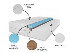 Mata kokosowa – to wkład z naturalnego kokosa. Zwiększa on twardość i wytrzymałość materaca i poprawia cyrkulację powietrza oraz ma działanie antyalergiczne.