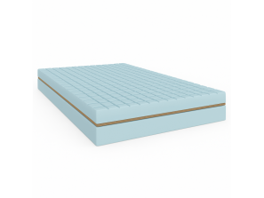 Górna warstwa „KOSTKA”  która została precyzyjnie nacięta w regularny wzór kostek o określonej głębokości i rozstawie. Dzięki temu powierzchnia materaca zyskuje trójwymiarową strukturę, która nie tylko lepiej rozkłada nacisk ciała, ale również zapewnia efekt mikromasażu podczas snu.