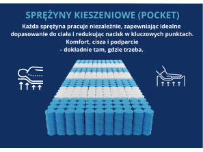 - 12 cm pocket (sprężyny kieszeniowe) - elastyczne, 7-strefowe podparcie
