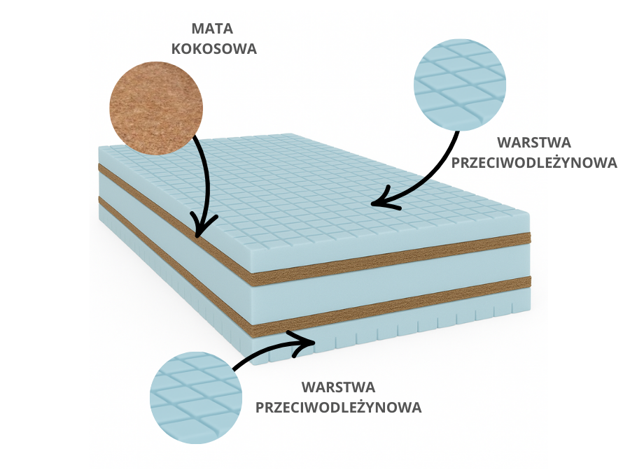 - 1 cm kokos - dodatkowe utwardzenie i higiena
