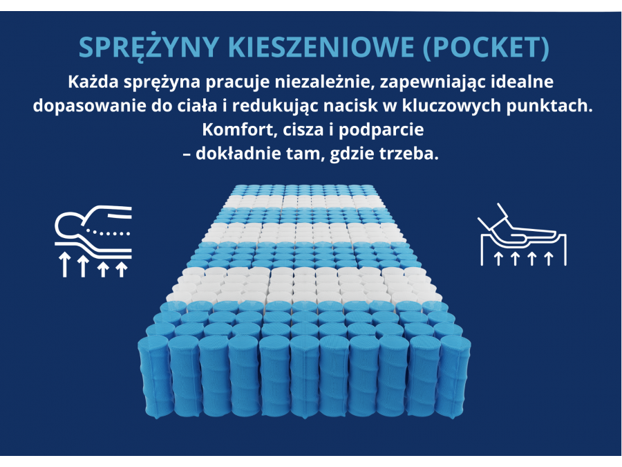 - 12 cm pocket (sprężyny kieszeniowe) - elastyczne, 7-strefowe podparcie