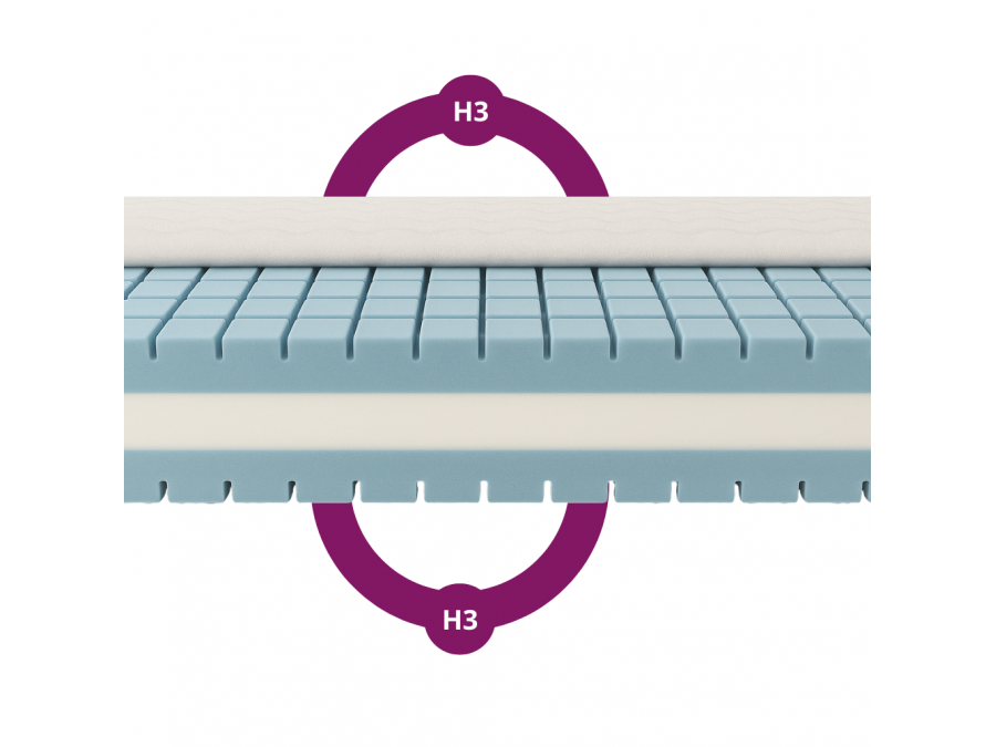 - Twardość H3 – optymalna dla większości użytkowników, zapewnia stabilne podparcie kręgosłupa.