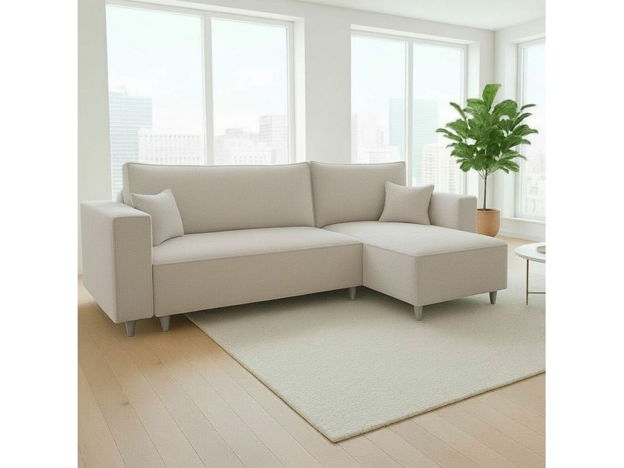 • Funkcjonalny układ L z wygodnym szezlongiem - Komfortowa część wypoczynkowa pozwala na pełen relaks — model idealny zarówno do salonów, jak i mieszkań pod wynajem.