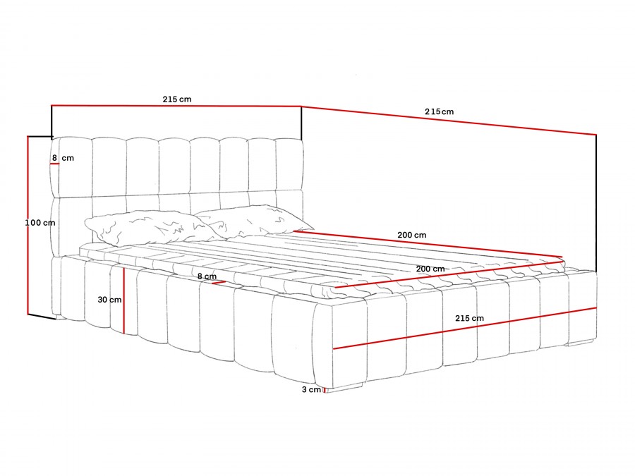 - szerokość zagłowia w łóżku 200x200: 215 cm